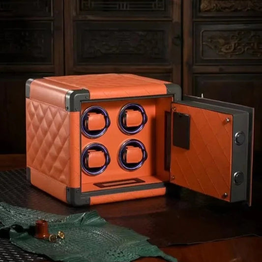 Luxury Leather Mini Watch Winder Safe Box Orange Black